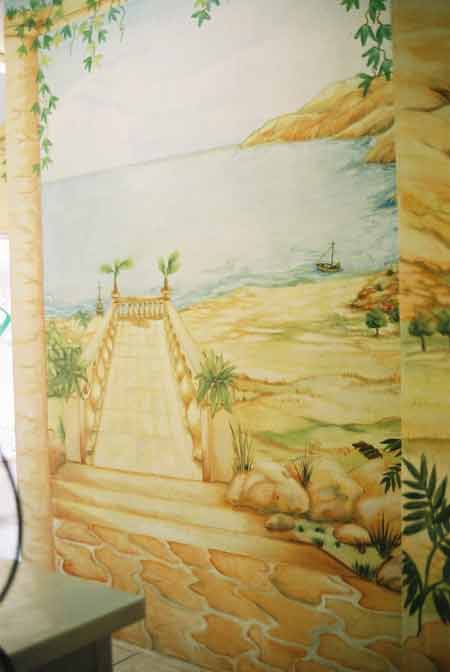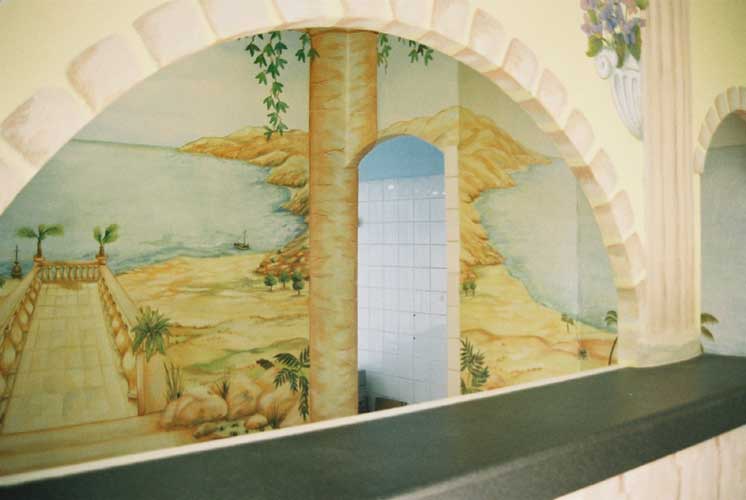 Badkamer muurschildering in particuliere woning, augustus 2003
